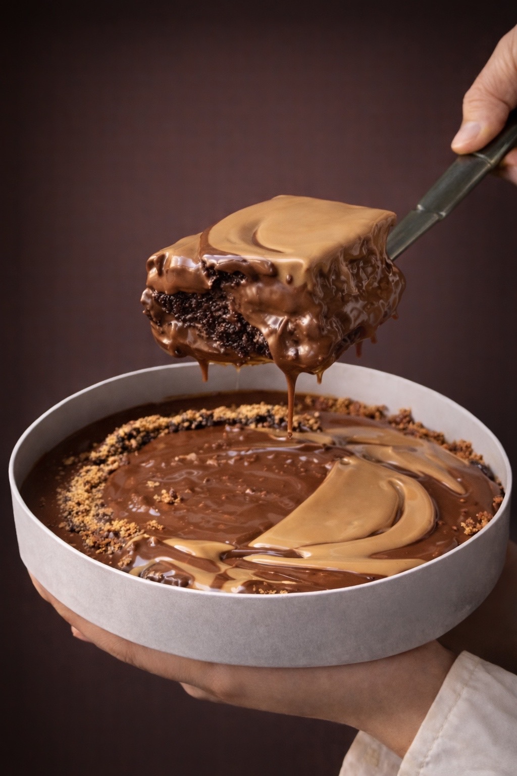 فدج براونيز مع ميلكي جار صوص و سولتيد كاراميل مع بيسكيت ، تكفي من ١٠-١٢ شخص